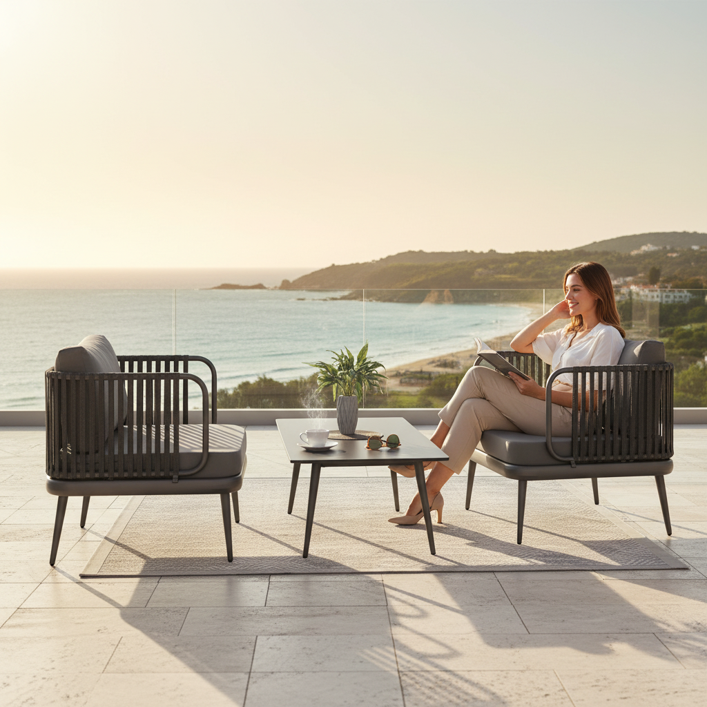 Zestawy ogrodowe aluminiowe CCLOFT pozwalają tworzyć spójne i komfortowe strefy wypoczynku na tarasie, w ogrodzie oraz w przestrzeniach restauracyjnych i hotelowych. Połączenie lekkiej konstrukcji aluminiowej, trwałych materiałów outdoor oraz komfortowych poduszek zapewnia wygodę użytkowania przez wiele sezonów.