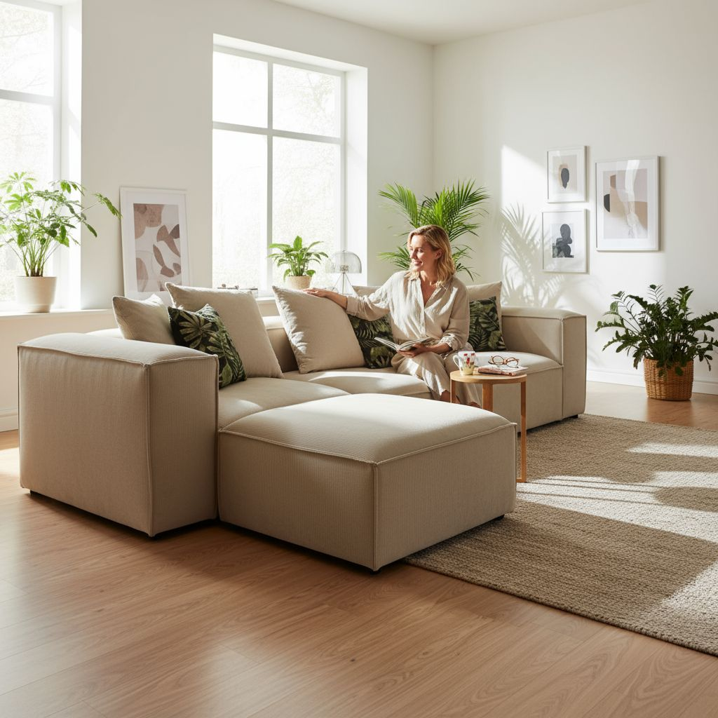 PLAZA Narożnik B1+1+1B+PUFA z poduszkami