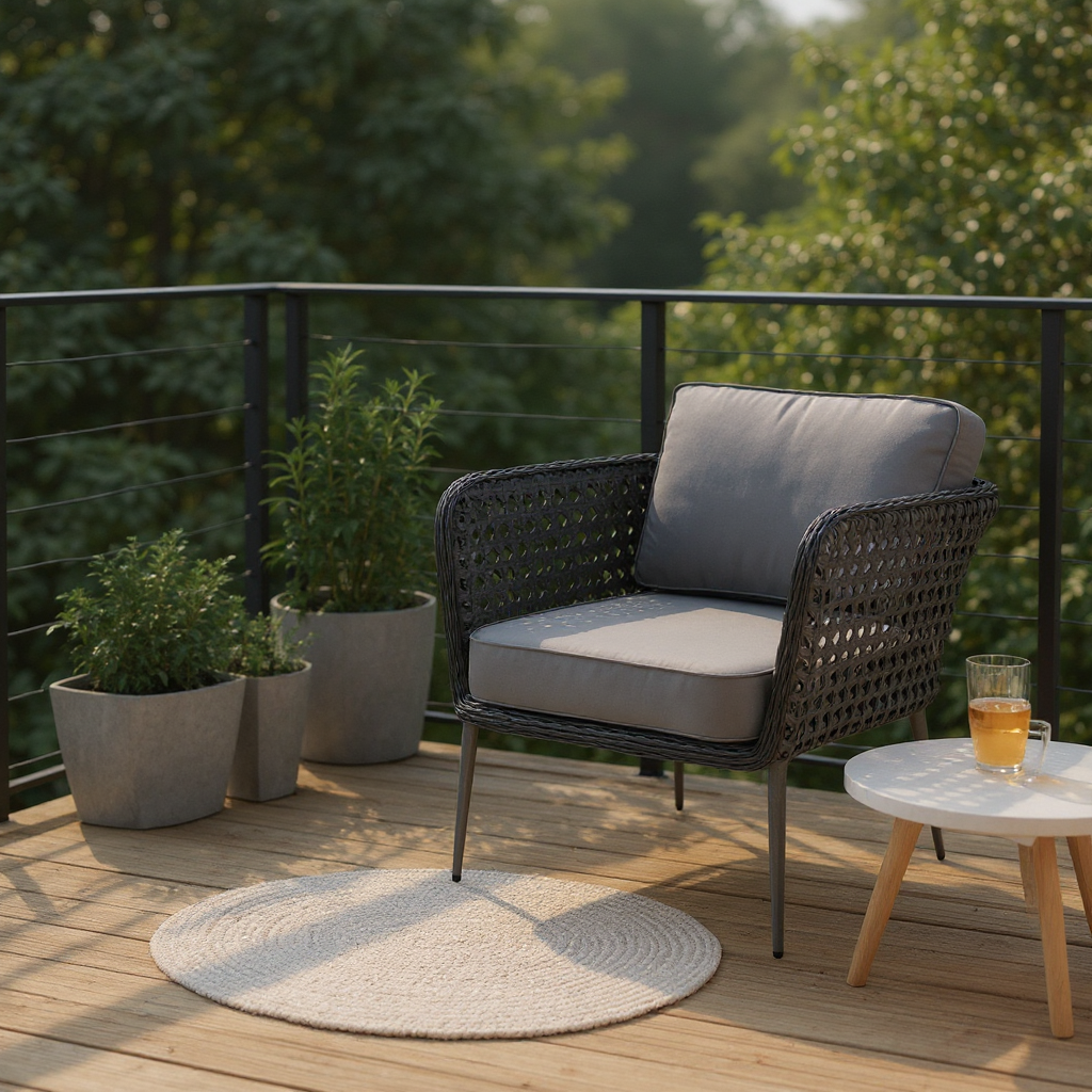 Fotel VENTO w kolorze antracyt doskonale wpisuje się w aranżacje inspirowane południem Europy. Jasna kolorystyka konstrukcji i plecionki nadaje meblowi lekkości oraz naturalnego charakteru, który idealnie pasuje do tarasów, ogrodów i przestrzeni wypoczynkowych.