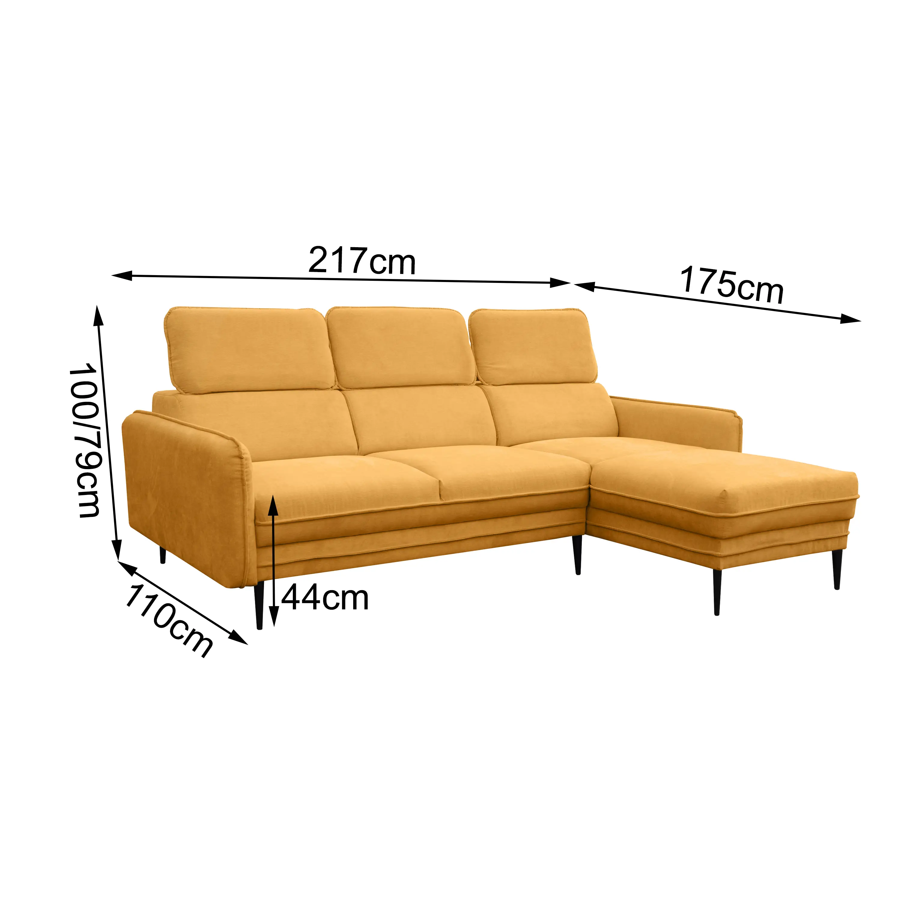 Stylowy narożnik JACK B2+LB z tapicerką SORO, regulowanymi zagłówkami i wysoką czarną nogą. Komfortowe siedziska i moduł Longhair.