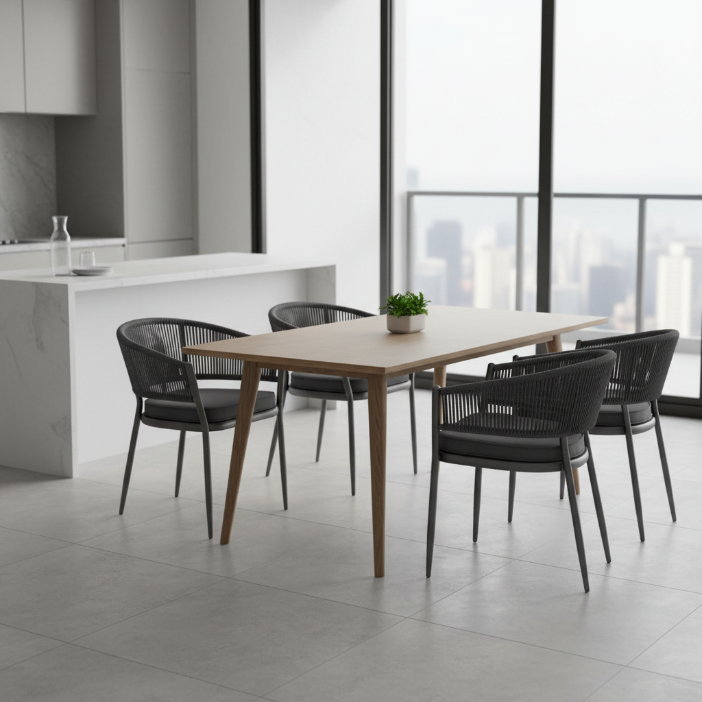 Meble aluminiowe CCLOFT to połączenie lekkiej konstrukcji, nowoczesnej estetyki i komfortu tapicerowanych siedzisk. Choć projektowane z myślą o użytkowaniu outdoor, wybrane modele doskonale sprawdzają się również we wnętrzach — w jadalniach, strefach barowych, restauracjach oraz nowoczesnych przestrzeniach mieszkalnych.