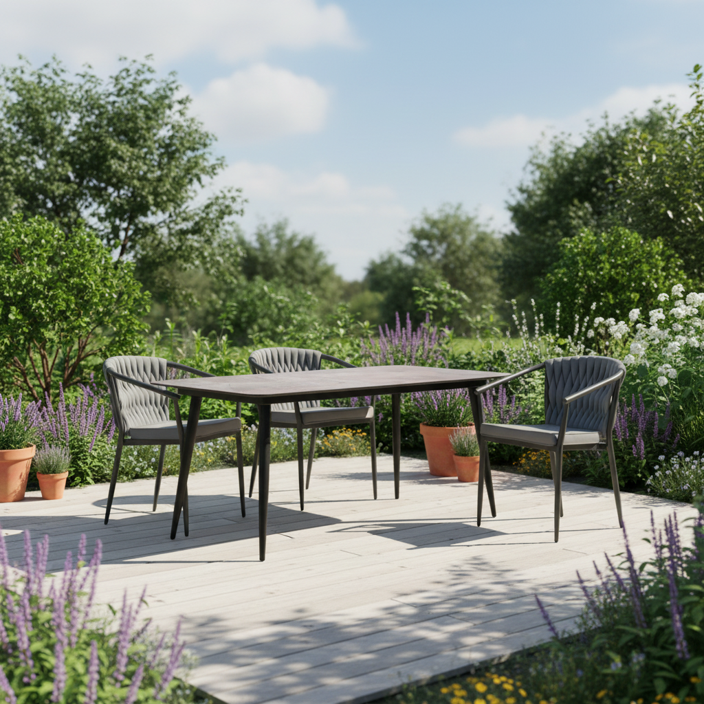 Stół ARCO wykonany jest z lekkiej i stabilnej konstrukcji aluminiowej malowanej proszkowo. Aluminium zapewnia odporność na wilgoć, promieniowanie UV oraz codzienne użytkowanie, dzięki czemu stół może być stosowany zarówno na zewnątrz, jak i we wnętrzach.
