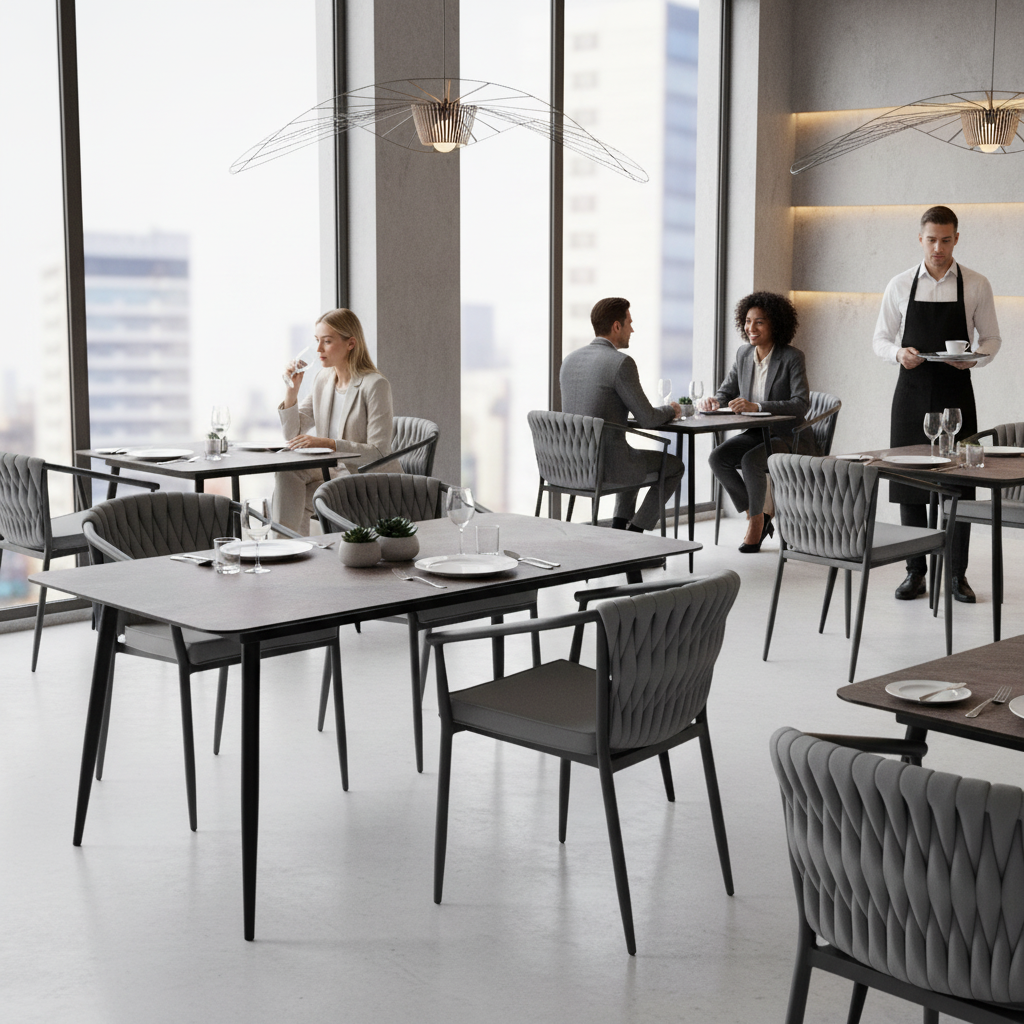 Stół ARCO 150x80 to nowoczesny stół indoor i outdoor łączący lekką konstrukcję aluminiową z trwałym blatem wykonanym ze specjalistycznej płyty HPL. Dzięki odporności na warunki atmosferyczne oraz szerokim możliwościom personalizacji doskonale sprawdza się w ogrodzie, na tarasie, a także w restauracjach i nowoczesnych wnętrzach.