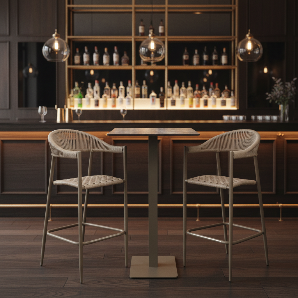 Zestaw VELA + stół ARCO CCLOFT to nowoczesne połączenie komfortowych krzeseł z plecionką linową oraz stołu z trwałym blatem HPL. Lekka konstrukcja aluminiowa, odporność na warunki atmosferyczne oraz szerokie możliwości personalizacji sprawiają, że zestaw doskonale sprawdza się w ogrodzie, na tarasie, a także w restauracjach i nowoczesnych wnętrzach.