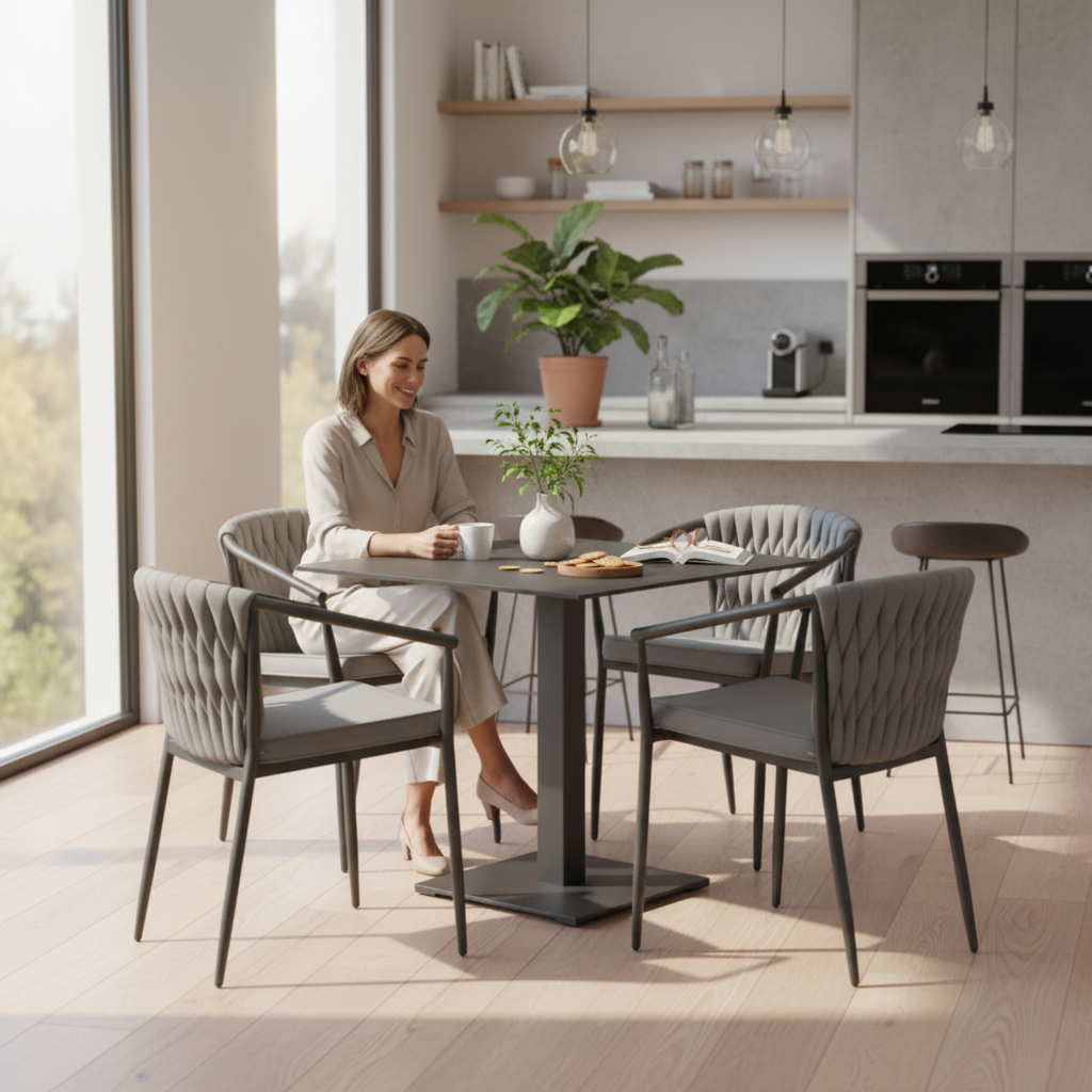 Zestaw ARCO CCLOFT to nowoczesna propozycja indoor i outdoor, łącząca komfortowe krzesła z lekką konstrukcją aluminiową oraz stół z trwałym blatem HPL. Spójna stylistyka kolekcji, odporność na warunki atmosferyczne i szerokie możliwości personalizacji sprawiają, że zestaw doskonale sprawdza się w ogrodzie, na tarasie, a także w restauracjach i nowoczesnych wnętrzach.