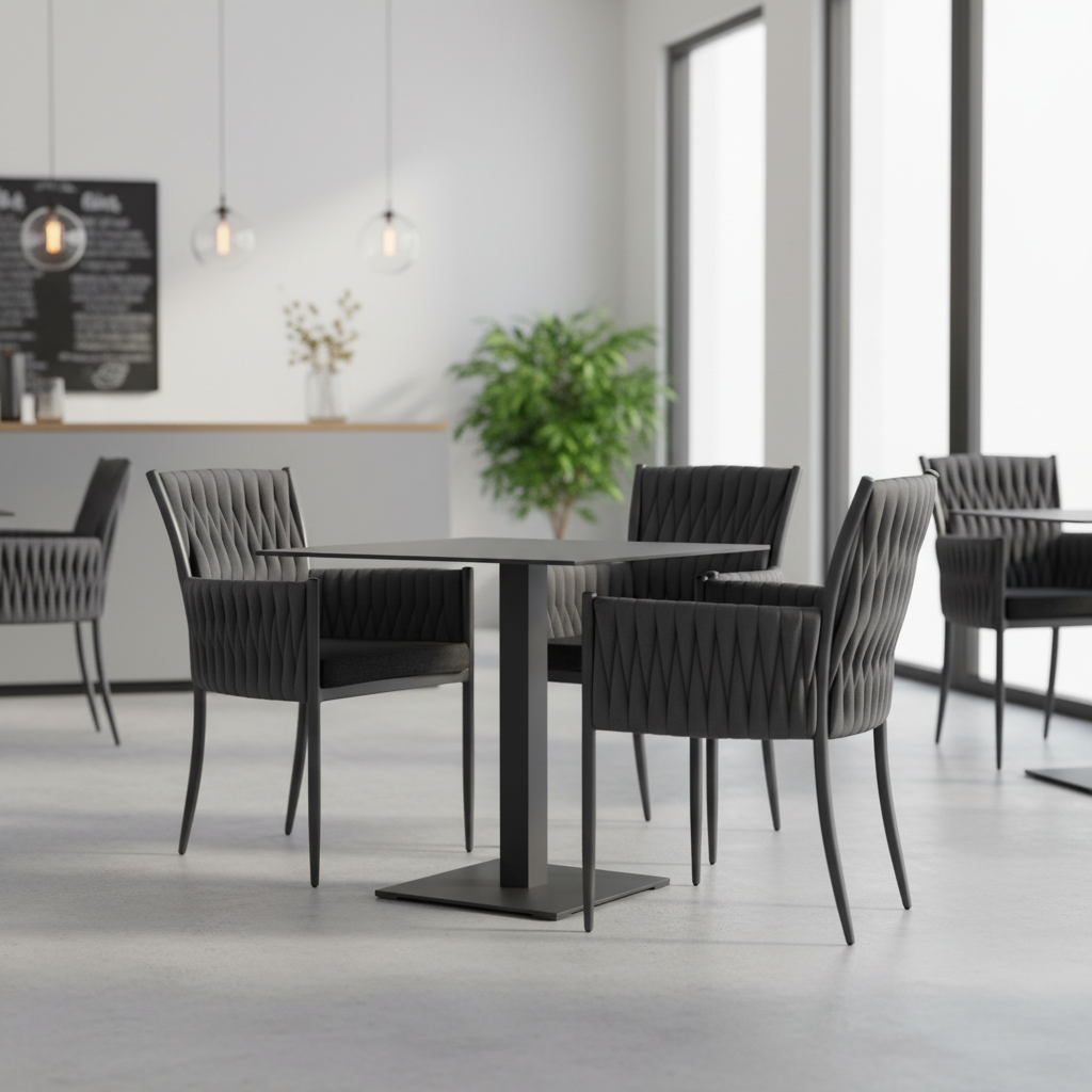 Krzesło VICTORIA to elegancki model indoor i outdoor, który łączy lekką konstrukcję aluminiową z charakterystyczną, grubą plecionką na oparciu i podłokietnikach oraz komfortowym tapicerowanym siedziskiem. Wyrazista forma i trwałe materiały sprawiają, że krzesło doskonale sprawdza się w ogrodzie, na tarasie, a także w restauracjach i nowoczesnych wnętrzach.