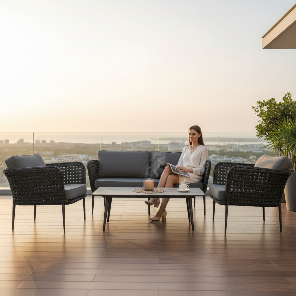 Spójny design kolekcji sprawia, że zestaw doskonale prezentuje się zarówno w prywatnych ogrodach i na tarasach, jak i w hotelach, restauracjach oraz przestrzeniach lounge.